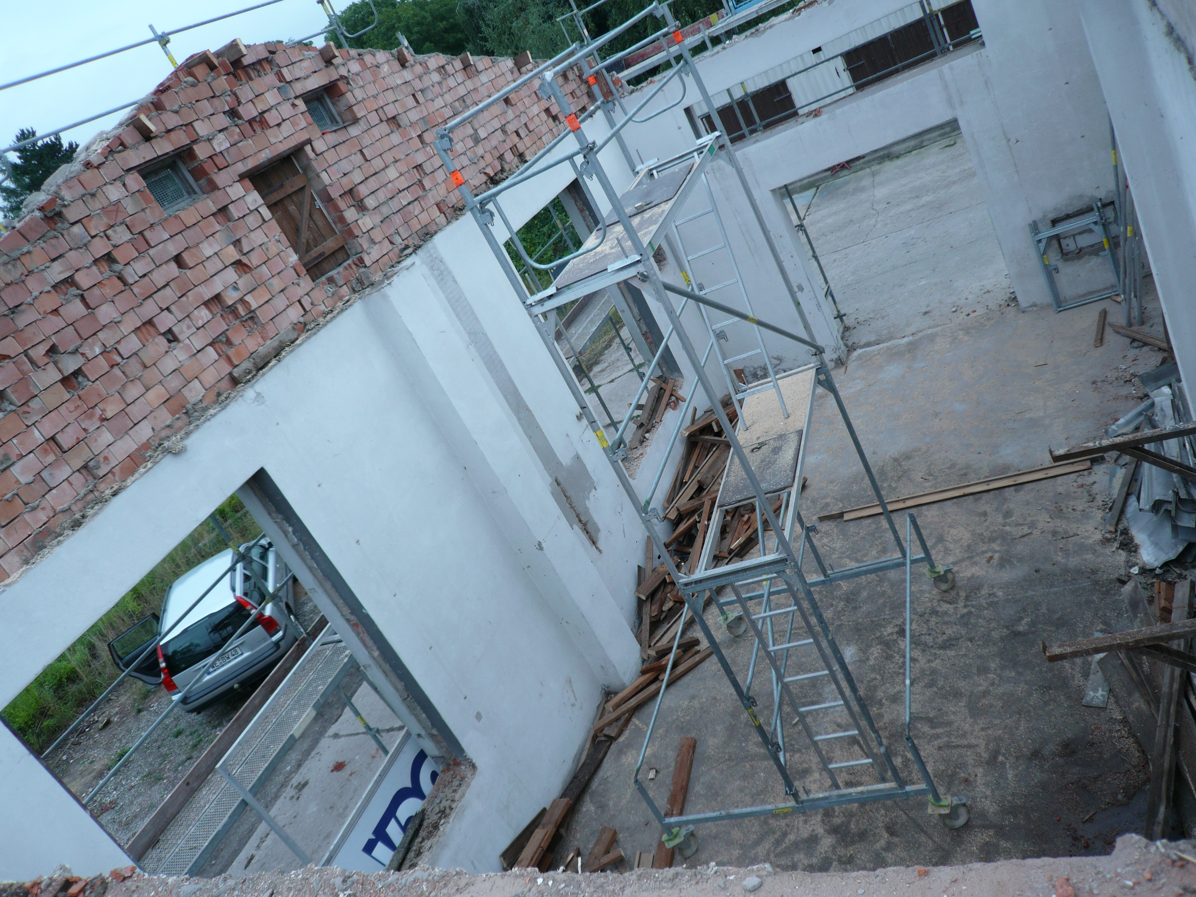 Liebe Freunde des Baumhauses, diese Woche ist schon viel passiert auf der Baustelle. Der Rico und seine Männer haben das Dach abgebaut und Giebelwände eingerissen. Sie bringen das zu Ende womit wir die letzten Wochenenden begonnen haben: Das Gebäude auf das reduzieren worauf das Baumhaus aufgebaut wird.