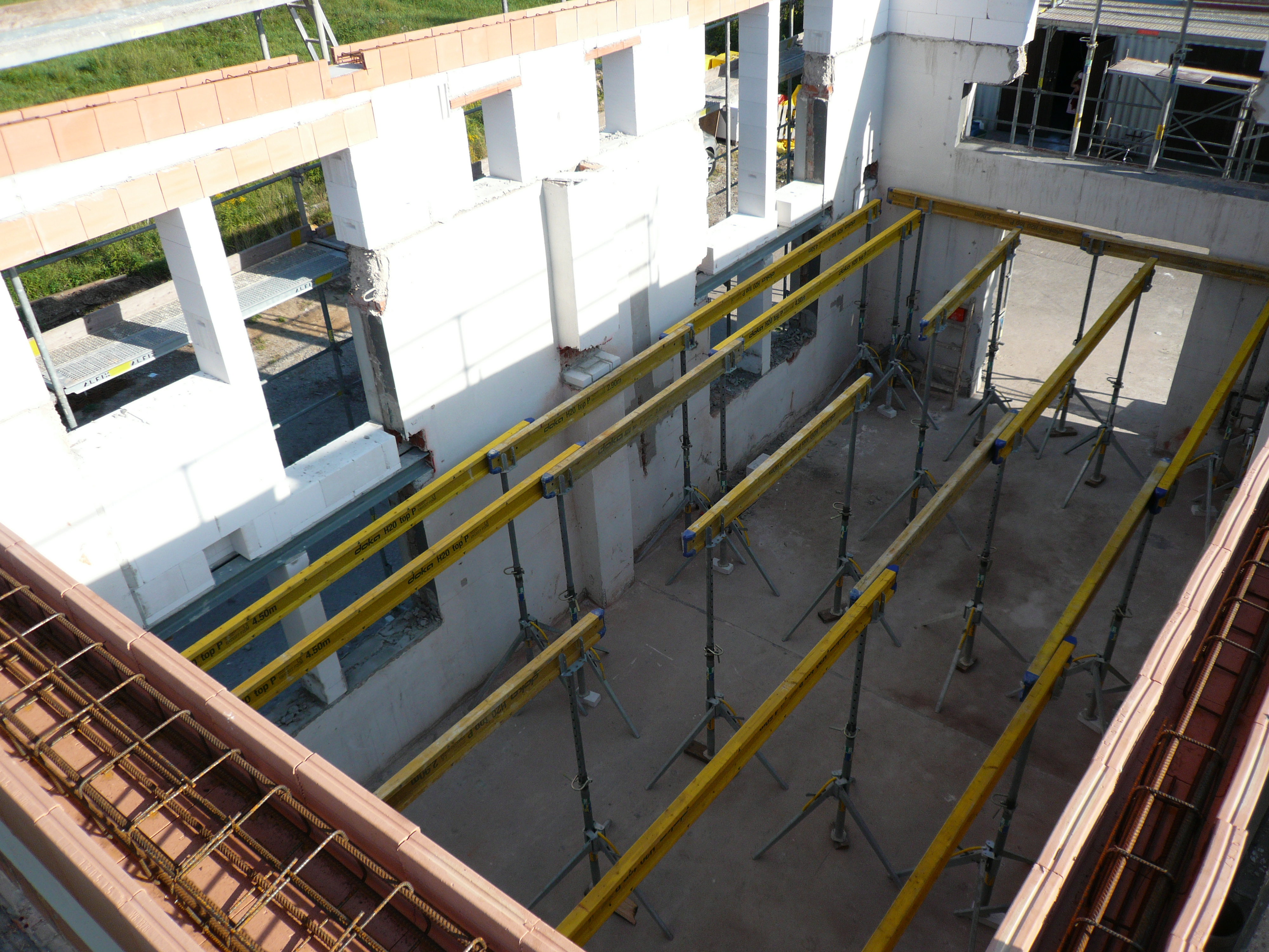 Alles ist vorbereitet für das neue Dach auf den Baumhaushallen. Am Montag kommen die Zimmerleute und beginnen damit das Holzdach zu bauen. Die letzten Wochen waren alle damit beschäftigt das Mauerwerk soweit umzubauen damit das Baumhaus seine neue Form bekommt. Vom Satteldach zum flachen Pultdach auf dem es später üppig wachsen und gedeihen soll. Außerdem wird zwischen der Dachbegrünung später mit Solarmodulen unser Wasser erhitzt.