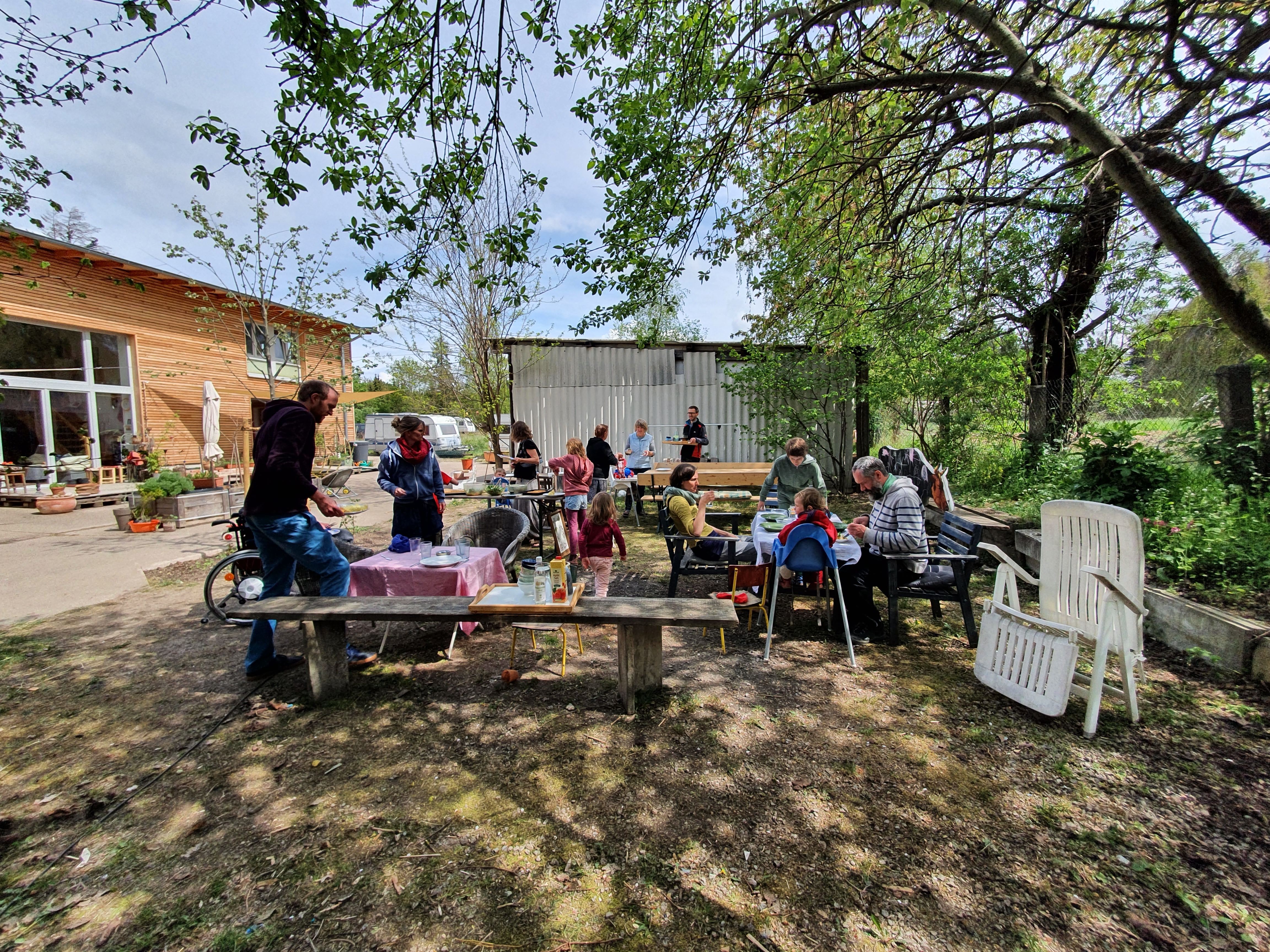 Es gab aber auch Vorhaben die durch die Corona-Einschränkungen nicht möglich waren oder sich nicht wie gewünscht weiter entwickelt haben. So wollten wir eigentlich unseren Schuppen auf der Hofseite noch weiter zum Gemeinschafts- und Veranstaltungsraum umbauen. Das Gebäude hat noch ein Dach aus Asbest. In der Förderung der Trias ist besonders auch Geld für eine ökologischen Dachsanierung mit